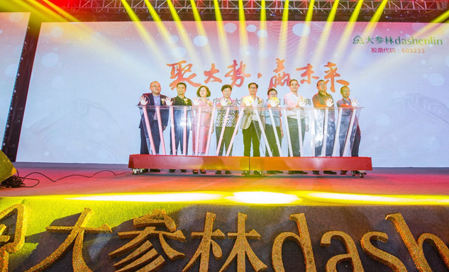 鼎博药业集团董事长刘景萍女士与大参林医药集团董事长柯云峰先生、中国医药商业协会执行会长付明仲女士等嘉宾共同开启了“聚大势•赢未来"大参林工商合作峰会的大幕。
